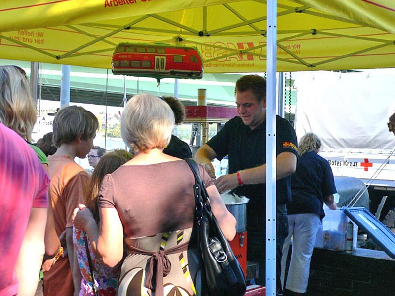 Zuckerwatte und Popcorn fanden reißenden Absatz bei den zahlreichen Besuchern des ASB-Stands auf dem NRW-Tag am letzten Wochenende. Direkt am Rhein, in der Nähe der Kennedybrücke aufgebaut, bot der über 50 m² große Stand viele Attraktionen vor allem für Familien. Neben süßen Sachen gab es viele Spiele zum Ausprobieren. Im Mittelpunkt stand dabei immer der Teamgeist nach dem Motto: „Gemeinsam geht es besser“, ein Motto, für das auch der ASB mit seiner Arbeit steht. Deshalb hatte er sich mit seinem Stand auch einmal ohne Blaulicht und rote Jacken präsentiert – er wollte als Wohlfahrtsverband wahrgenommen werden, der nicht nur dafür da ist, Menschen in Krankheit und Leid bei zustehen, sondern auch dafür, mit ihnen die schönen Seiten des Lebens gemeinsam zu gestalten.